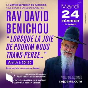 Mercredi 25 février à 20h au CEJ - Coaching & Limoud avec Rav Benchetrit - Buffet - After avec Ben Groupe Paradise