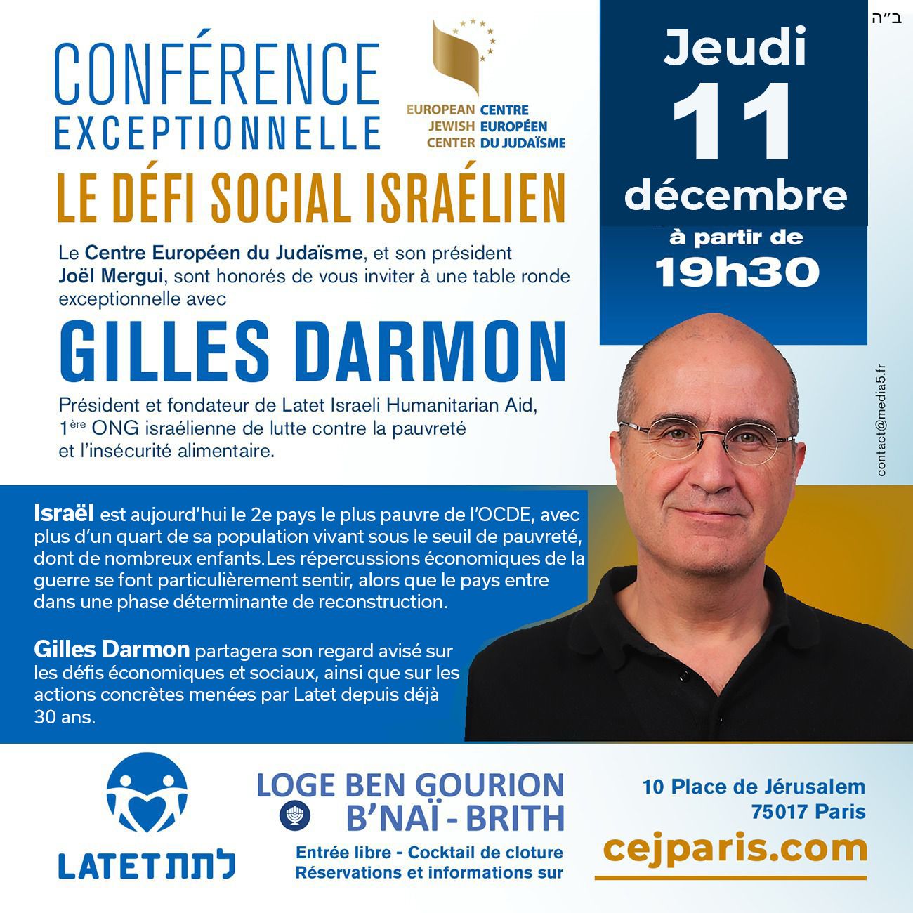 Gilles Darmon, Président et fondateur de Latet Israeli Humanitarian Aid, 1ere ONG israélienne de lutte contre la pauvreté et l’insécurité alimentaire.